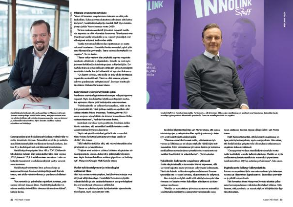 Innolinkin liiketoimintajohtaja Lari Nurmi toteaa , että uusien toimintatapojen ja rekrytointimallien myötä joustavuus ja ketteryys ovat lisääntyneet henkilöstöalalla .