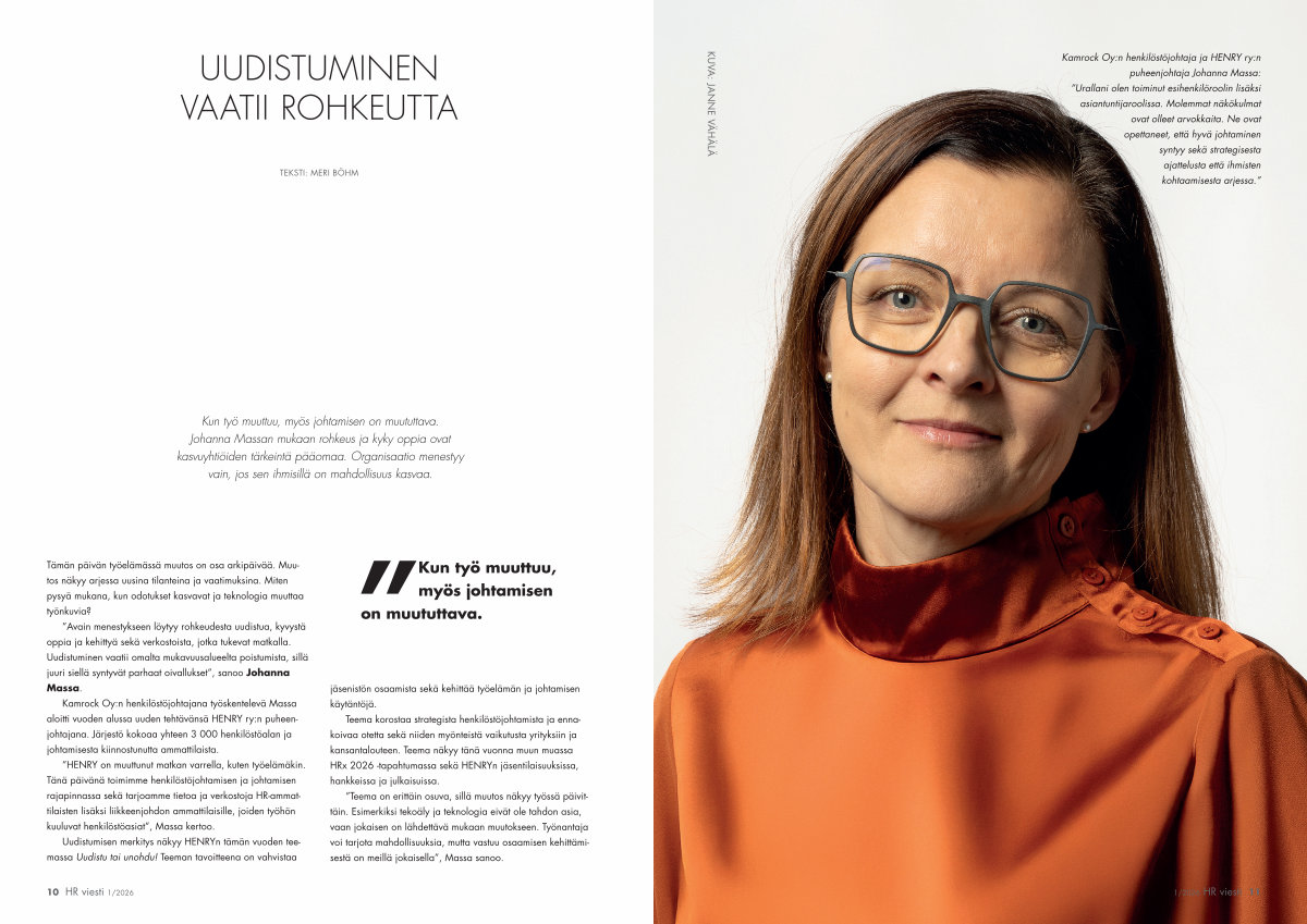 ” HENRY on muuttunut matkan varrella, kuten työelämäkin. Tänä päivänä toimimme henkilöstöjohtamisen ja johtamisen rajapinnassa sekä tarjoamme tietoa ja verkostoja HR-ammattilaisten lisäksi liikkeenjohdon ammattilaisille, joiden työhön kuuluvat henkilöstöasiat”, Massa kertoo.
