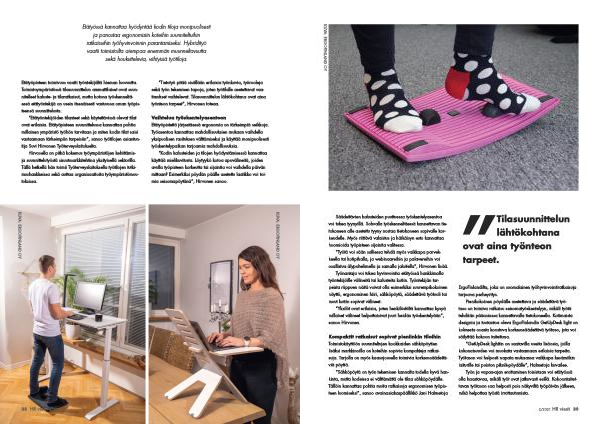 Etätyössä kannattaa hyödyntää kodin tiloja monipuolisesti ja panostaa ergonomisiin koteihin suunniteltuihin ratkaisuihin työhyvinvoinnin parantamiseksi . Hybridityö vaatii toimistoilta aiempaa enemmän muunneltavuutta sekä houkuttelevia , viihtyisiä työtiloja .