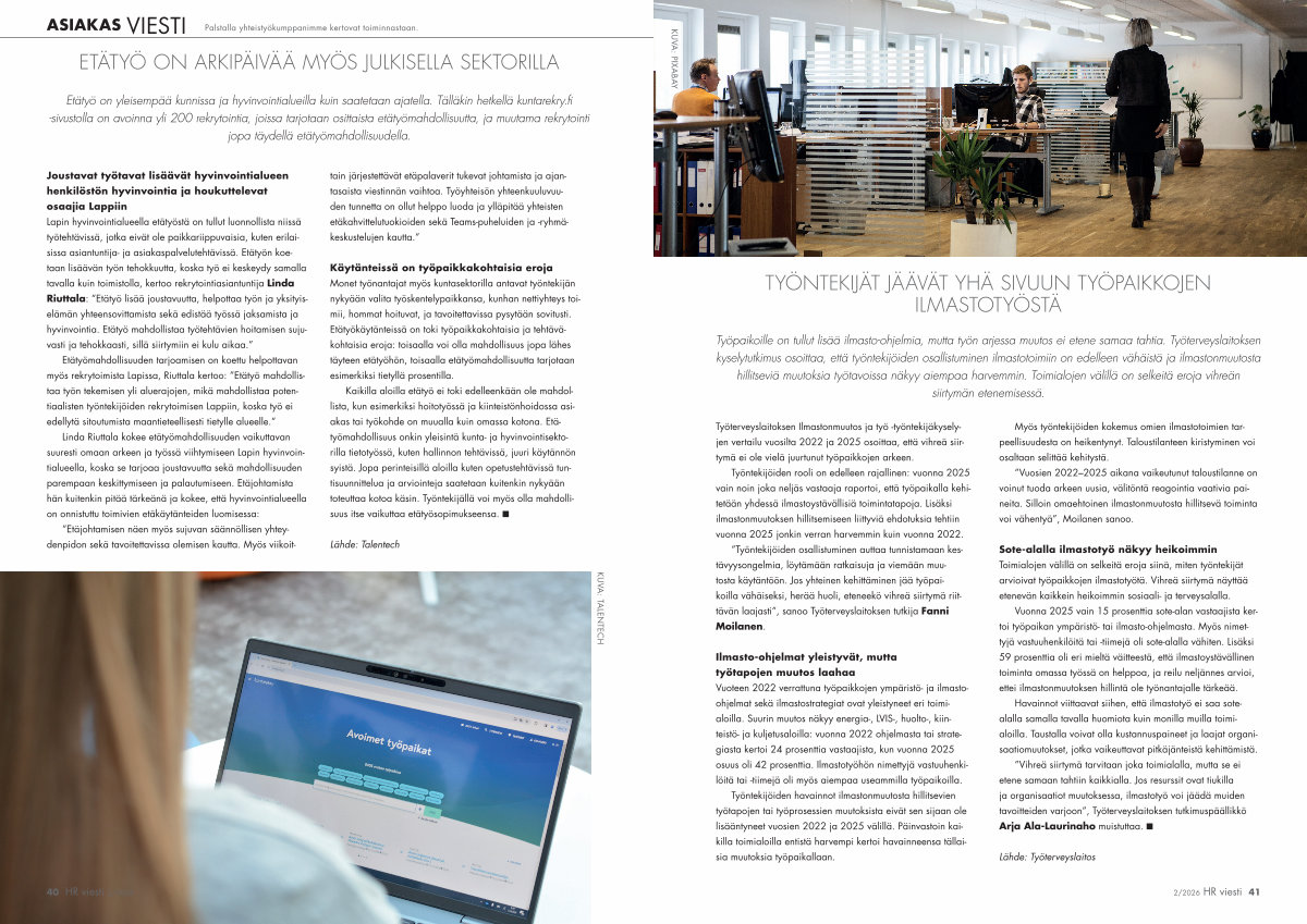 TYÖNTEKIJÄT JÄÄVÄT YHÄ SIVUUN TYÖPAIKKOJEN ILMASTOTYÖSTÄ