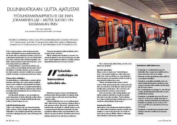 • Työmatkaetu on tarkoitettu kodin ja työpaikan välisiin matkoihin, mutta sitä voi käyttää myös vapaa-ajan matkoilla.