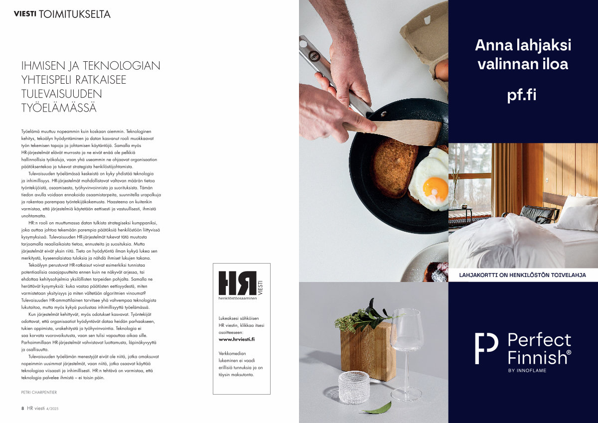Työelämä muuttuu nopeammin kuin koskaan aiemmin. Teknologinen kehitys, tekoälyn hyödyntäminen ja datan kasvanut rooli muokkaavat työn tekemisen tapoja ja johtamisen käytäntöjä. Samalla myös HR-järjestelmät elävät murrosta ja ne eivät enää ole pelkkiä hallinnollisia työkaluja, vaan yhä useammin ne ohjaavat organisaation päätöksentekoa ja tukevat strategista henkilöstöjohtamista.