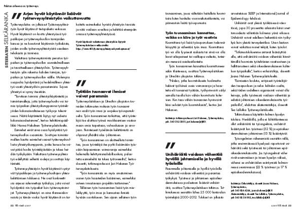 dän työkykyään. Vaikuttava työterveysyhteis- hakemalla kehittymismahdollisuuksia, palau-